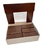 18 kleine choco wafels gevuld met luchtig schuim zitten er in deze doos .