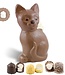 Onovertroffen onze verrukkelijke Chocozoenen in al die verschillende smaken. De Chocolade Poes mag nog even pronken op de cadeautafel. Tot je aan een oortje gaat knabbelen of een stukje uit zijn strikjes bijt. Dan proef je de onweerstaanbare, intense en krachtige smaak van onze pure, melk of witte chocolade die je het beste langzaam laat smelten op je tong om er lekker lang van te genieten. Dubbel lekker en super mooi dit cadeau dat een gelukzalige glimlach op het gezicht zal toveren van degene die jij er blij mee gaat maken. Wij pakken het mooi voor je in en sturen het naar jou of direct naar degene die jij ermee wilt verrassen. Succes verzekerd.